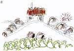 The picture above dates back to when we first moved here – with our Maremma sheepdog Aura – and the only available shade was under our old carob tree (in fact, the only mature tree we had). That was also heaven, albeit minus the laptops, stereos and Russian Vodka, which all goes to show, that even heaven, like just about everything else, is merely a relative concept…