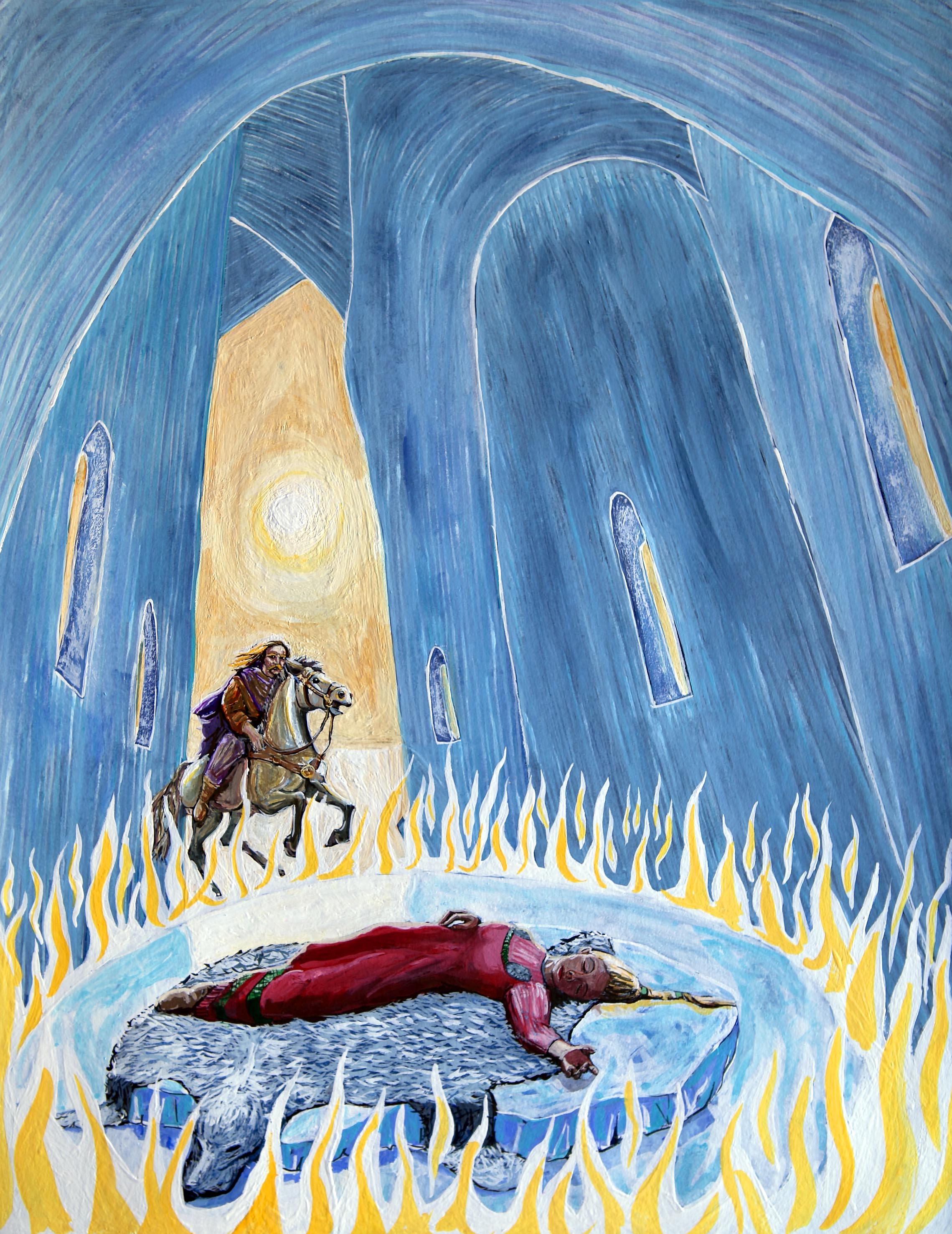 One such job in the summer of 1998, which turned out to be my final excursion into illustration, was something of an epic. I was commissioned, again by Cassell Illustrated to make a series of 16 gouache colour plates to front each chapter of a book called “Mythical Lovers”. The author, Sarah Bartlett, was/is a well-known astrologer who had compiled and written a coffee-table history based around 16 ancient and iconic love myths from around the world.