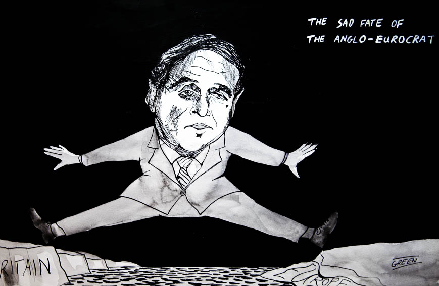 I knew that the Daily and Sunday Telegraphs had failed to replace Nicholas Garland with another leader cartoonist since his leaving the paper in 1986 and I also had the moral backing of the ex-Thatcher home secretary, Kenneth Baker, whom it so happened was /is an avid collector of political cartoons, and who’d seen and very much liked my work, and expressed as much in writing.
