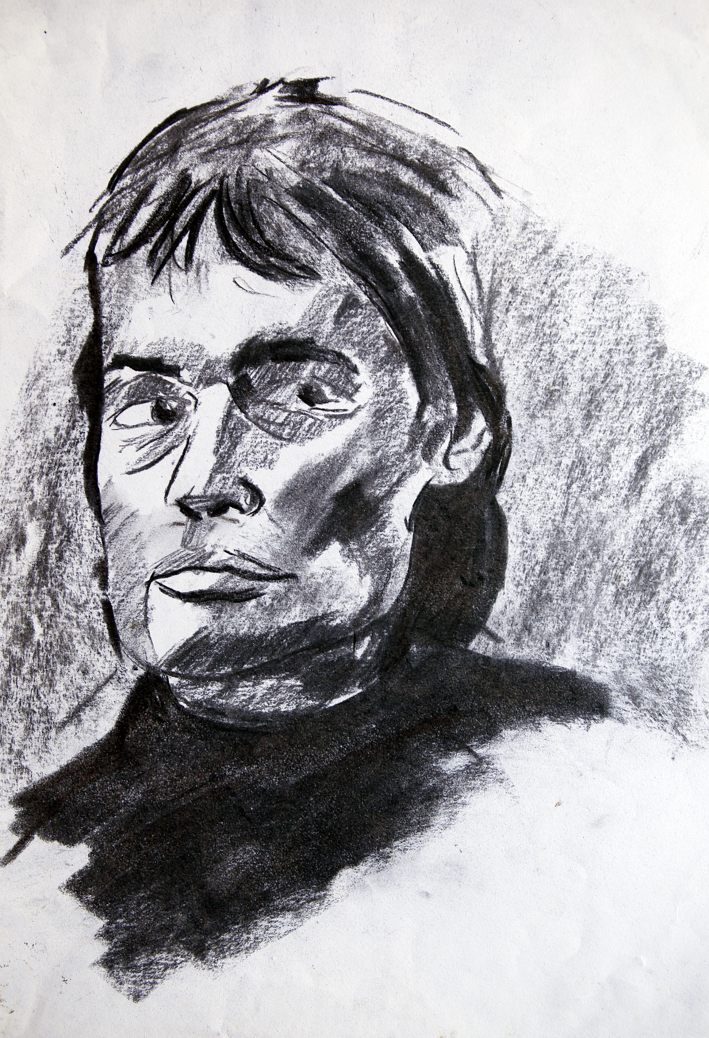 This selection of portraits (including sketches of one or two quite well-known people), covering about two decades and done in a variety of media, formal and rough, is dedicated to the late Chaim Beckman (one of the subjects presented here) for believing in me from such an early age, and also to Kevin, for teaching me to work well under pressure. Sadly, I don’t have any of the dozens of drawings I made of Kevin as he kept the “fucking” lot…