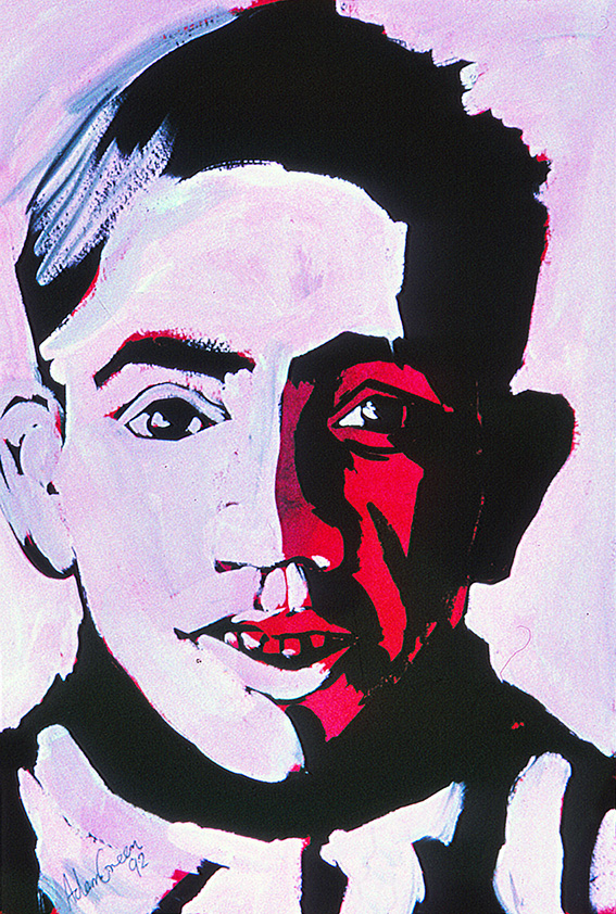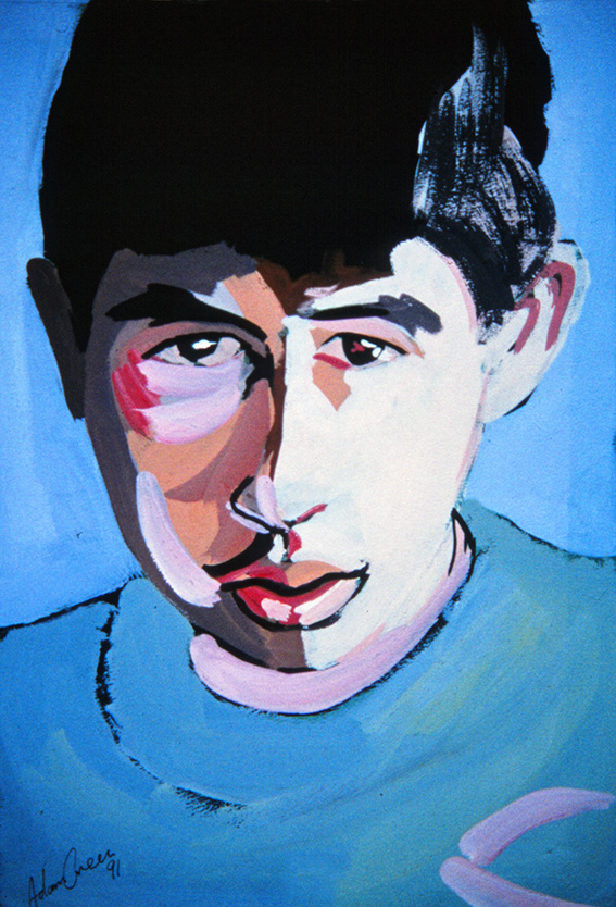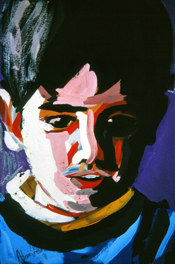 This is arguably the most monumental of all my large paintings, and it is certainly the most deeply felt. The “missing” ninth lad, who suffered from schizophrenia, did not want to be sketched and is represented by the padlock in the centre of the painting. The padlock is obviously a metaphor for him and much more besides. The blues and lilacs represent the uniform they all wore.