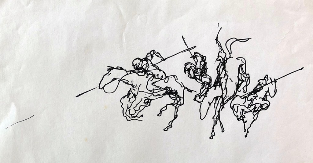 Macedonian Hipparchy at Issus (after Dali) – 1980 – pen on paper