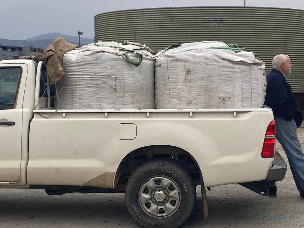 This year’s olive harvest on the back of our truck. Half an imperial ton, so not bad for two old codgers!