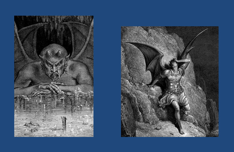 Thus, when Yan Dargent and Gustav Dore portray Satan (below), are they portraying what they themselves imagined from their own familiarity with the Bible or were they only considering Dante’s or Milton’s vision. Moreover, how much was the more recent Dargent Satan (left) informed by the earlier Dore depiction (right)?