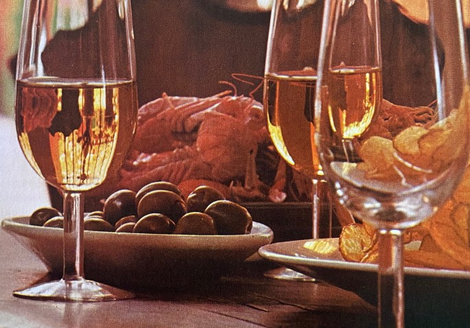 The waiter also brought a half bottle of ice cold Manzanilla and three chilled tulip shaped glasses. As he poured the palest of pale wines Carlos said; ‘I also took the liberty of ordering drink. I hope fino is to your liking?’