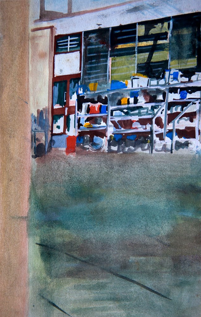 The Pottery Courtyard (Harrow School of Art) – gouache on paper – 1976