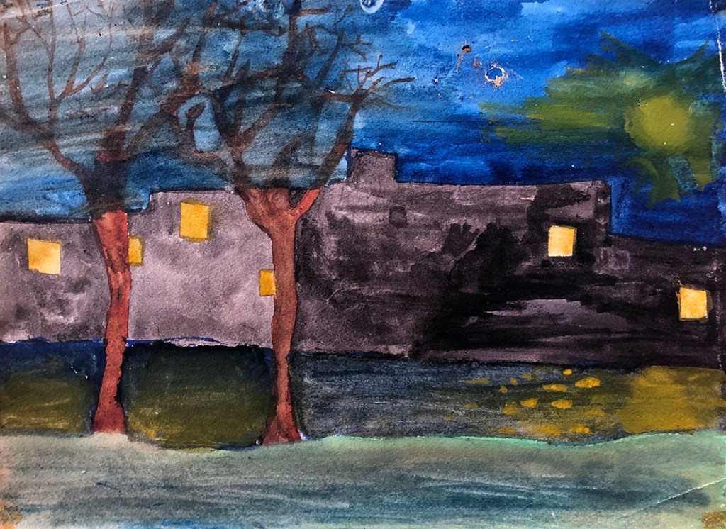Northwick Park Hospital on a Winter’s Eve – gouache on paper – 1976