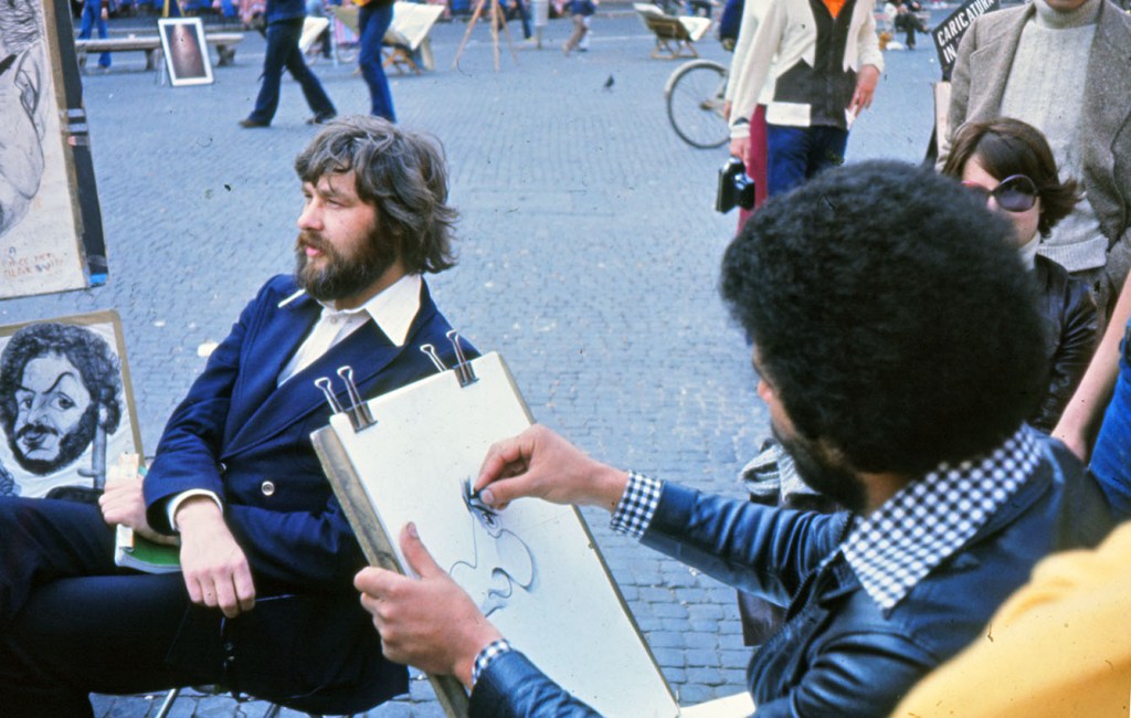 Hermann being sketched: I think this was in Florence. Hermann had been one of the many foreign student volunteers to help in the cleanup of Florence following the disastrous 1966 flood. I used much of what he told me about his work in and around the Uffizi to inform an early chapter in my novel ARK…