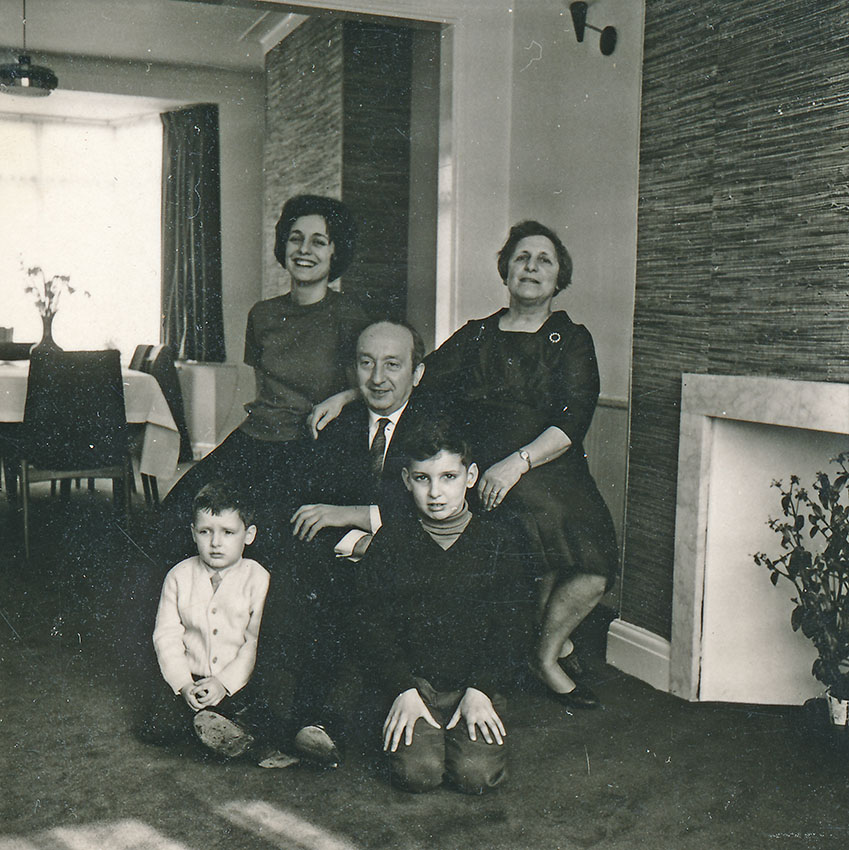 Apart from a bout of glandular fever when I was six, my childhood was exceptionally happy. Although my father had departed the scene when I was a babe-in-arms, my little family was a more than adequate compensation for his absence. Here we have Hannah and her parents, Becky and Harry, me and my brother Michael (my uncle Sidney took the picture), in my first home…