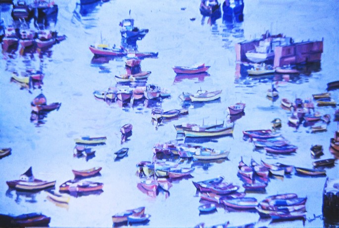 Sadly, it wasn’t just the goatherd who brought us down to earth with a bump. The next evening, when we returned from a visit to the coast we found that three of my paintings had been stolen, including one of my favourites of the ships in Arica Harbour in Chile. What made the pain of the robbery worse was that we knew exactly who the guilty party was (not the poor goatherd by the way!) but for reasons too sensitive to divulge here, we also understood that there wasn’t a damn thing we could do about it. Fortunately I did at least photograph the three pictures and have presented them here…