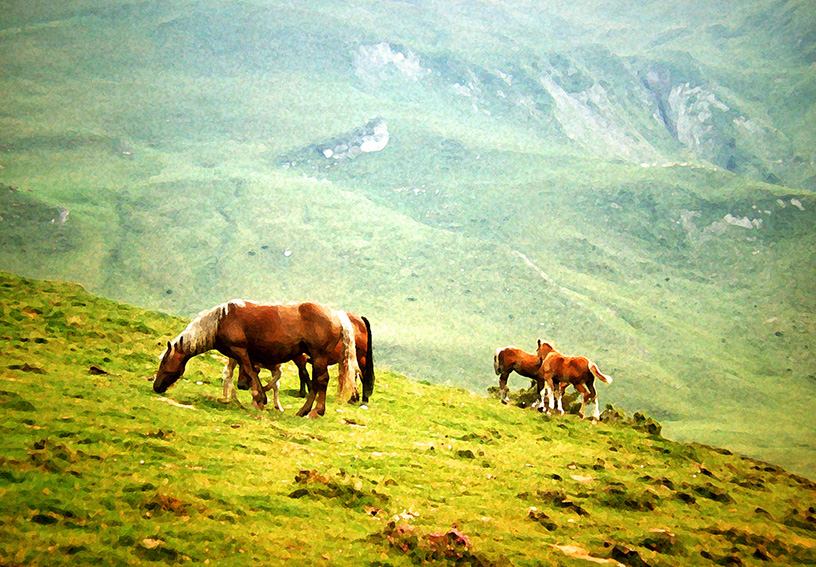The images presented here are from some of those early excursions compiled into one virtual tour. Their yellowed, grainy texture reflect golden memories of the beauty and the unsurpassed variety (in Europe at least) of the French landscape; in this case from the Pyrenees in the south, to the beaches on Normandy in the north, via Provence and the Auvergne. It’s amusing to consider now, that if it had not been for my fear of flying I might not have got to visit some of these extraordinary places…