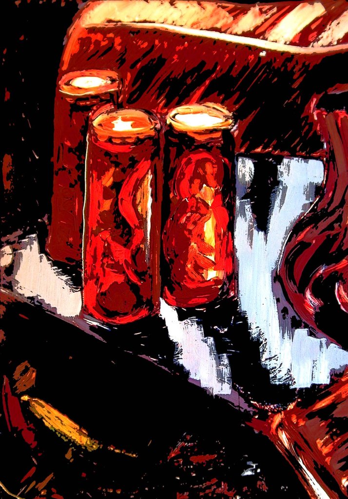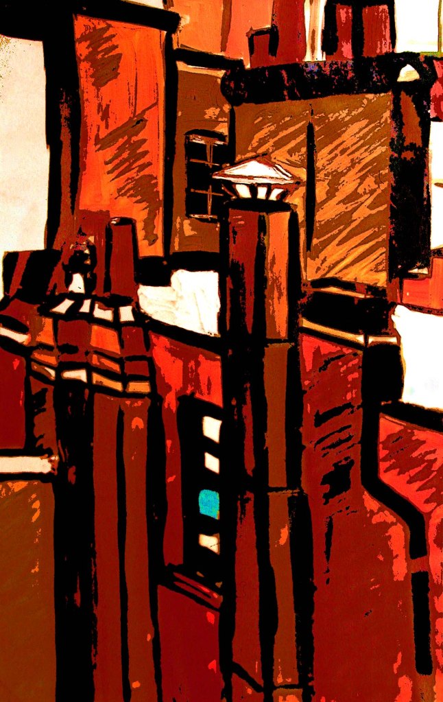The images here illustrate that development and are in part at least a testament to Henry Mundy’s kindness and astute understanding of who, and what I actually was. In his opinion at least, I was a “gifted colourist”, and it was this ability in particular which he helped me to hone. Henry’s influence is graphically illustrated in two images posted here – the two views out of my studio window of the local Soho roof tops. The first is all monochrome and gloomy – before Henry had ever set foot in my space and it well reflects the same gloominess of my mood. The second one was more or less the same but in browns. However, the tiny daub of emerald green in the window was the result of the very first piece of advice he ever gave me and, from then onward I was liberated, as the rest of the “gallery” posted here clearly shows.