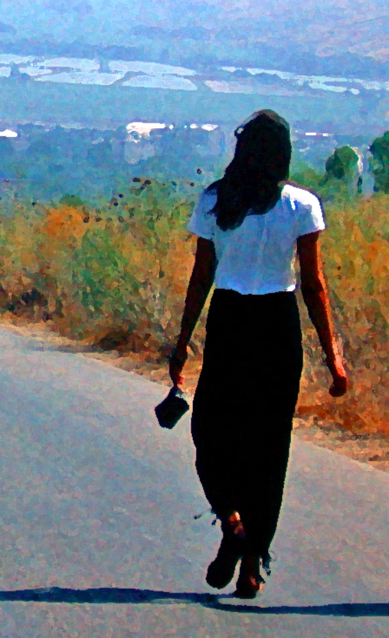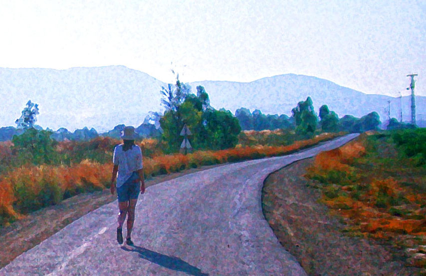 The image of someone walking away into the distance has stirred my artistic sensibilities since early adulthood. I’ve returned to the subject photographically and in paint pretty regularly since about 1979, from when the first picture presented here dates (Astrud at Tel Hai).